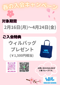 良い環境のウィルイングリッシュで英語力を身に付けてください。お待ちしています。